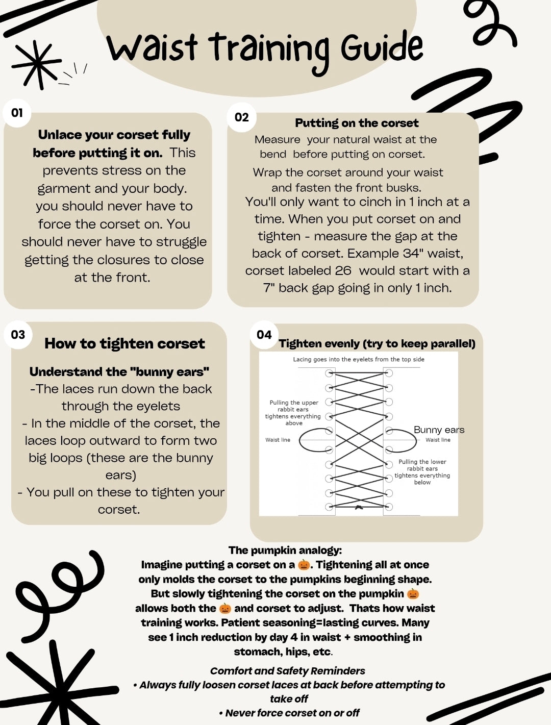 This overbust corset is designed to sculpt and define with precision. Fitted for a 22-inch waist goal, size Small, and a 14.5-inch length measured from middle of bust to hem, it delivers full coverage and a flattering silhouette. Perfect for waist training or styling as a statement piece, it combines structure, comfort, and elegance.