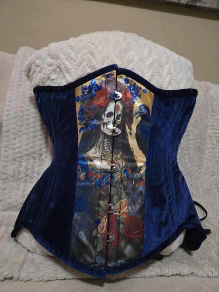 Blue Velvet Santa Muerte Corset | 24" Waist Goal | 12" length