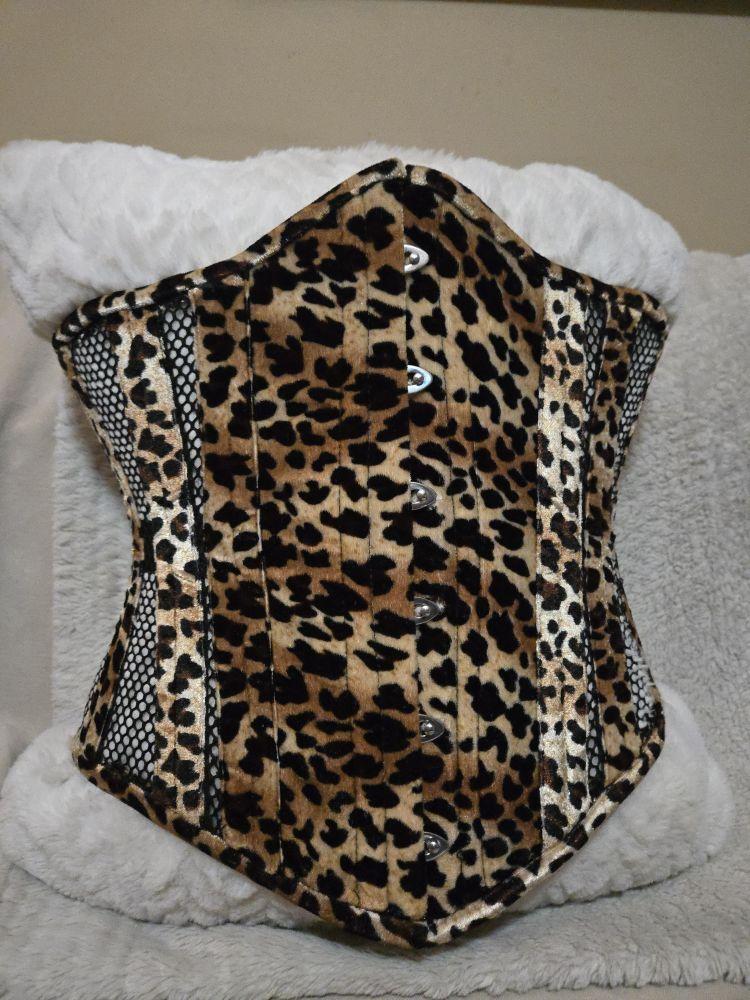 Velvet Leopard Print & Black Mesh Waist Training Corset – 24" Waist Goal,13.5 length